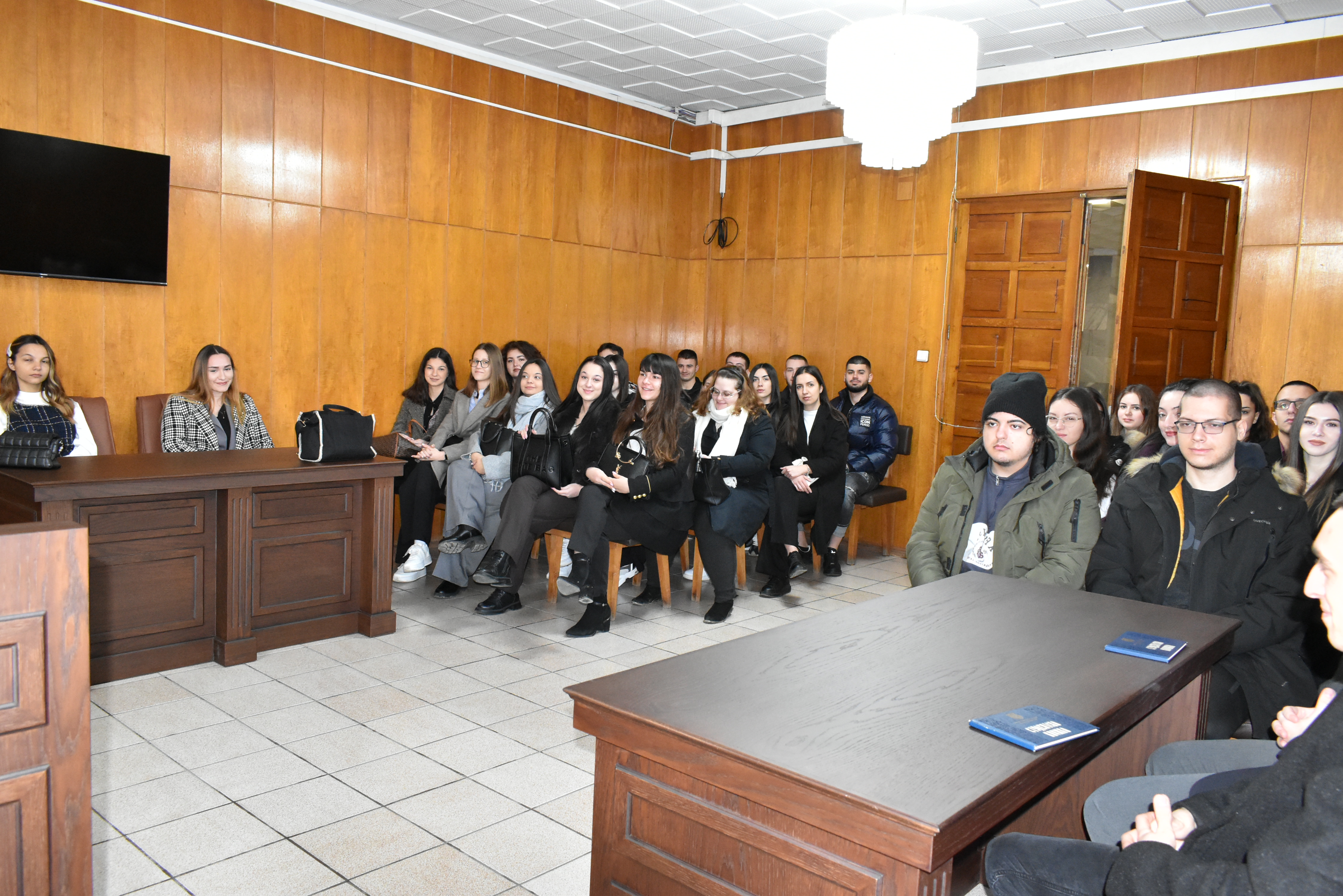 В първия ден от практиката бъдещите юристи изпълниха три от съдебните зали на Районния съд. Те бяха официално приветствани от административния ръководител – председател на съда съдия Младен Димитров, от заместник-председателя съдия Кирил Хаджитанев, както и от съдия Георги Георгиев.